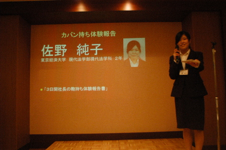 6つの大学から総勢19人の1・2年生が八王子市内の中小企業の社長さんに3日間張り付くというインターンシップ事業です。 これは『サイバーシルクロード八王子』という八王子市内の団体が3年前から行っているもので、大学生に中小企業に対する認識を 養ってもらおうとはじめた事業です。結果、実習先に就職をされた学生さんもいるとのことで、研修生にとっても、受入企業にとっても 大変有意義な事業です。報告会に出席を致しましたが、初々しい学生さんの報告は見ていてほのぼのとしました。 このまま育ってくれればなぁ…とつくづく感じた次第です。。。 主催者が設けたカリキュラムを達成した学生さんには修了証書が手渡されました。 |