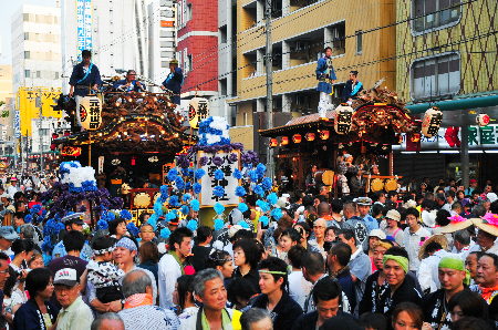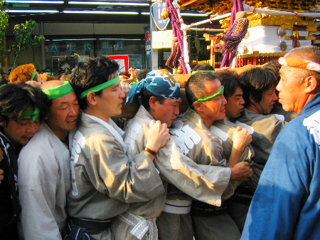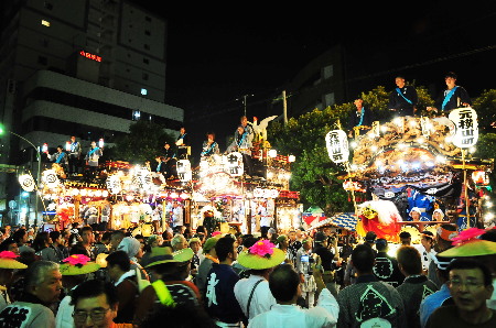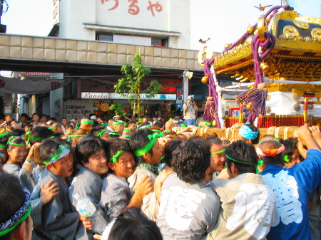 今年もやってきました八王子の夏!と、言えば八王子まつり!と、言えば『千貫みこし』!(って人ばかりではないとは思いますが…) 多賀神社宮神輿 『千貫みこし』の渡御は、重さ約4tを誇る関東屈指の大神輿を延べ1,600人の担ぎ手が甲州街道をところ狭しと練り歩きます。 今年は沿道からではなく棒脇から激写!あわせ半纏を着ていないと入れないエリアでの接写は貴重ショットです。各所で乱闘騒ぎとなり波乱の渡御となりましたが無事終了 それに続く山車巡行。夜はちょうちんに灯がともり幻想的な光景となりました。また、当日は三崎町付近で火事があり消防車が20台近く出動する騒ぎがあり、一時は騒然となりました。結局消火活動は夜に亘りかなりの被害があったそうです。 |