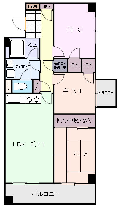 3LDK … LDK/約11帖 洋間/6帖・5.4帖 和室/6帖
