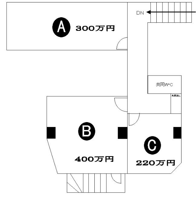 A/300万円   B/400万円  C/220万円