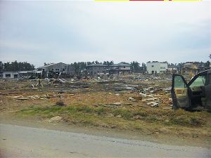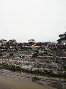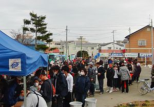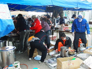 3月11日。未曾有の大地震に見舞われた関東・東北地方。 幸いにして弊社社屋の改修工事を手伝っていた私は地震には気が付いたものの、あのような大惨事になっていた事を 夜、帰宅してテレビを見るまで全く知りませんでした。前述の通り地震発生時も極端に大きな揺れは感じなかったのです。 あまりに長い揺れに居合わせた職人さんと外に出て様子を見た程度でした。何と1人は足場の上でしたが、『誰かふざけて 揺らしているのかと思いましたョ』ですって 直後の混乱時に現地入りを見送り、満を持して発生から1ヶ月を前に現地入りしました。行き先は宮城県石巻市。 八王子市内の仲間と都内にいる多くの仲間たちと物資を届け、現地で炊き出しを行うのが目的です。 三鷹の青果市場で各地から集めた支援物資を積み込み現地へ向かう予定でした。が、まさに積み込み作業中 またもや特大の余震が発生。我々も作業を一時中断して建物の外へ・・・ 「結構大きかったなぁ」仲間達がざわつく。 震度は? 現地はどうなんだ? 津波は? 各自一斉に携帯電話を手に取り情報収集に画面に食い入る。 震度は6強。既に津波発生のニュースが飛び交う。更に、東北自動車道の通行止めが報じられる。絶望感が漂う… 「行けるのか?」いや「行くのか?」そんな声が誰とも無く出る。参加者を緊急招集し全員の意思を確認。 みんなの意見徴収の末「行ける所まで行こう!」一人として辞退する者無く作業再会。参加者は40名弱。 トラック6台・保冷車1台・乗用車2台・マイクロバスを1台チャーターした。バス以外は各自が持ち寄ったものだ。 決して少ないとは言えない人数での行動ではチームワークと意思疎通が大切だ。 日付が変わり、そろそろ1時になろうかという頃出発の合図。『お互い気をつけて!』みんな顔を見合わせ声を掛け合う。 当初の予定では早朝現地入りし、仕込みをしてお昼に炊き出しを振舞う予定でした。しかし、東北道の通行止めは 予想以上に長く、進んでは止まり、進んでは止まりの繰り返し。結局、石巻入りしたのはお昼近く。この時間になると 地元民と災害復旧の車両で道路も大渋滞。苛立ちの中時間だけが過ぎていく。やっと、現地の拠点となる市場へ到着し 物資を下し終えたのは13:00を回っていた。余談ですが炊き出しを行う際は事前に場所と時間がアナウンスされるそうです。 この頃になると無人の所で無駄足にならないよう情報伝達網が確立されておりました。ちなみに私達の予定は告知されて おりましたが地震発生のため中止する旨の連絡も既にアナウンス済みとのこと。みな一様に落胆の顔。ろくに寝ないで車を 走らせて来たのに… 食材はどうする? 明日にするか? 既にそんな会話をしていると、現地の仲間が連絡を取りあって 炊き出しGO!の段取りを取り付けたとの事『よっしゃぁ〜っ!行くぞぉ〜!』早速出発。ある者は現地スタッフの車に同乗し ある者はトラックの荷台に身をもぐらせ、私も自走して来た4tのハンドルを握り現地スタッフの後を追う。 中止を伝えていたせいか実施地点の『渡波駅』には人がいない。とりあえず荷台を開け荷下しをしていると2・3人の主婦が 近寄ってきて『あんたたちここで何かやんの?』といぶかしげに聞く。仲間が『今から炊き出しやるからおばちゃん待っててね』 するとおばちゃんたちいずこへといなくなり、我々は準備に手を戻します。ところが!それから数分と経たずして人がぞろぞろと 集まってくるではありませんか!しかも瞬く間に大勢の人の列!『うわぁ〜。なんだぁ〜っ!どこにいたんだこの人たち???』 私たちは驚きと、感激に顔を見合わせました。が、そんな感傷に浸っていたのは束の間。その列の目が私たちへのプレッシャー へと変わっていったのです。そりゃぁそーですよ。何も支度してないのですから。これから仕込みをしようと言う時に既に行列が 出来てしまったのですからさぁ大変。『ガス入れろ!』『お湯沸かせ!』『違うよ!この鍋じゃないよ!』怒号が飛び交う即席 厨房のてんてこ舞いをよそに、行列は至って粛々と、そして淡々と伸びて行きます。本当に整然と規律良く待たれていました。 メニューは試行錯誤の末ホットドッグにしました。汁物もボツボツ出始めていたし、おにぎりは飽きてるかもしれないし… パンなら子どもも喜ぶのでは?と中身を“ハンバーグ”“ウィンナー”“焼きそば”にして、子どもから年配者まで食べれるように 工夫しました。これは裏話ですが、事前打ち合わせでは一人2個までと決めて食材の数を揃えました。会議中スタッフから こんな質問が『一人2個は良いんだけど、「家で家族が○人待ってます」なんて言う人がいたらどーするの?』みんんで顔を 見合わせます。その結果、性善説に基づき被災者の方の自主申告に応える事!と取り決めをしました。案の定『家で待つ 家族の分も』と言う方は大勢いらっしゃいました。『年寄りが家で動けないんだよw』なんて方もいてホンとに切実な状況でした。 