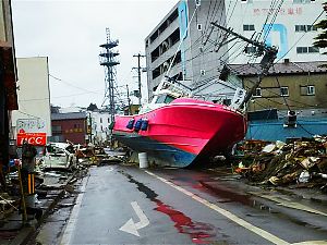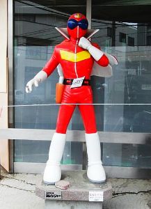 街のあちこちにキャラクターのオブジェが点在する。 そのキャラクター達同様先生の記念館もこんな海の ど真中なのに無事にその姿を残していた。 今後の観光資源が復興への大きな期待となっている。 |