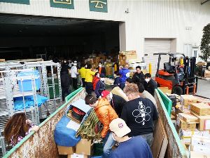 ![]() 貴重な物資を提供して下さった方々の付託と信頼に 応える責任を負っていざ出発! |